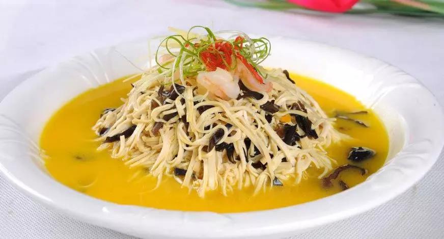 淮揚菜中揚州獅子頭是必點之物,湯比較有油,獅子頭很入味,肉是嫩而不硬,微甜入口。做揚州獅子頭,有幾個標準是一定要遵守的,不然是做不象的。主要原料是蟹肉和用豬肉斬成細末做成的肉丸。
