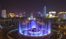 泉城廣場,自由游覽。泉城廣場東西約780米,南北寬約230米,面積16.96公頃。設(shè)計(jì)以貫通趵突泉、解放閣的邊線為主軸,以榜棚街和濼文路的延續(xù)為副軸而構(gòu)成框架。各功能分區(qū)圍繞軸線由西向東依次展開。廣場主入口處,莊嚴(yán)的國旗迎風(fēng)飄揚(yáng),國旗下“泉城廣場”四個在字銘刻于入口標(biāo)志之上,其背面刻有《泉城廣場記》。