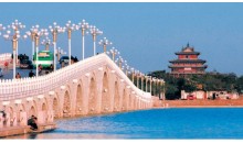 早餐后游覽【山陜會館】、【傅斯年紀念館】、【湖濱公園】、觀世紀拱橋——【二十一孔橋】、【騰龍廣場】、【船游東昌湖】,游覽由清華大學設計,于2003年5月落成,建筑風格新穎別致,融匯了東西方的文化神韻,是建筑與藝術的結晶【水城明珠大劇場】
