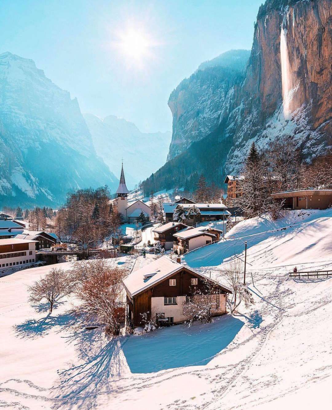 因特拉肯(INTEL‘LAKEN,即“湖間”之意)屬伯爾尼州,距離伯爾尼市約50公里,地處圖恩湖和布里茵茨湖之間,海拔只有568米,是瑞士著名的風(fēng)景區(qū)之一。這里群山環(huán)抱,綠色草場(chǎng)廣闊開(kāi)敞,瑞士著名的少女峰終年白雪冠頂,倒映綠色湖中,遠(yuǎn)山近水,湖光瀲滟,置身此地,如在畫(huà)中。