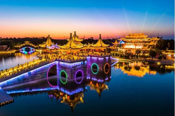 臨清東宛園位于臨清市區東北隅,北鄰東呂高速,由三和紡織集團投資建設,總投資4.75億元。景區占地面積320917平方米(折合481畝),其中:建筑面積68318平方米,水體面積108318平方米、綠化面積117409平方米。是集山水園林、明清建筑、休閑娛樂于一體的大型文化旅游景區。