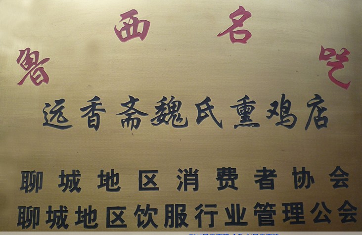 遠香齋魏氏熏雞產于山東省聊城市東昌府區北關路東魏氏熏雞老店,本店以制作、銷售遠香齋魏氏熏雞而聞名華夏。熏雞是我國的獨有產品。遠香齋魏氏熏雞以其獨特的風味堪稱熏雞精品。它是先祖魏永泰于1810年(清嘉慶十五年)創制的,歷經魏兆松、魏世忠、魏金鑒至魏立華,已是第五代傳人,距今已有200年的歷史。版權所有山東聊城聊之旅國際旅行社有限公司,轉載必究!它的選料精良、配料精當、制作精細、挑選肥嫩無病的活雞,經加工后,在鋸末煙頭上熏制而成,熏雞皮縮裂,胸腿肉外露,掐之無彈性,色澤栗紅,嚼有余香,即可下酒,又可佐茶,具有脫水適宜,易于存放,便于攜帶的特點,產品銷售往全國各地,是宴賓饋贈之佳品被列為聊城名吃之首,深受廣大消費者的厚愛。