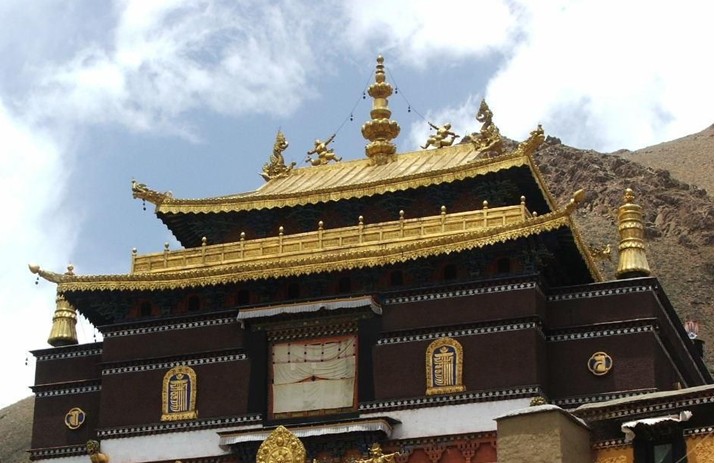 度母殿位于寺院經堂后面三座佛殿東側,三座佛殿中居中的是釋迦牟尼殿,西側是彌勒殿;釋迦殿內供5米多高的釋迦牟 尼鎏金銅像,據說像體內有釋迦舍利,還有宗咯巴的頭發以及根珠巴的經師西繞森格的頭蓋骨。度母殿藏語稱卓瑪康,供2米高的白度母銅像,兩旁還有泥塑的綠度母像。
