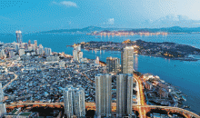 龍舟池陳嘉庚先生于1950年在海灘上筑堤圍墾外、中、內三池。外池俗稱“龍舟池”,寬300米,長800米,總面積24萬平方米。池畔建有式樣各異的“啟明”、“南輝”、“長庚”及“左”、“右”、“逢”、“源”七個亭子。