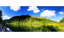 九寨溝藍天、白云、雪山、森林、盡融于瀑、河、灘、綴成一串串宛若從天而降的珍珠;篝火、烤羊、鍋莊和古老而美麗的傳說,展現出藏羌族人民熱情強悍的民族風情。九寨溝,一個五彩斑斕、絢麗奇絕的瑤池玉盆,一個原始古樸、神奇夢幻的人間仙境,一個不見纖塵、自然純凈的“童話世界”!她以神妙奇幻的翠海、飛瀑、彩林、雪峰等無法盡覽的自然與人文景觀,成為全國少有擁有“世界自然遺產”和“世界生物圈保護區”兩頂桂冠的圣地。九寨溝以原始的生態環境,一塵不染的清新空氣和雪山、森林、湖泊組合成神妙、奇幻、幽美的自然風光,顯現“自然的美,美的自然”,被譽為“童話世界九寨溝"的高峰、彩林、翠海、疊瀑和藏情被稱為“五絕”。因其獨有的原始景觀,豐富的動植物資源而被譽為“人間仙境”。