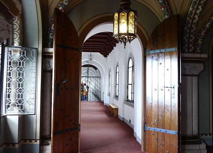 進古堡的大門后,只見入口,窗戶,列柱廊等全都是半圓頭拱,這是羅馬式的建筑的特征之一。后面有一堵墻壁上的拱門, 叫作盲拱,在其屋檐下及窗下,設有串連的小圓頭拱的盲拱帶,緊接著數間的國王起居室,版權所有山東聊城聊之旅國際旅行社有限公司,轉載必究!都是哥德式的建筑,并以瓦格納的歌劇作品中世紀的傳說作為題材人物所繪制的壁畫作為主題裝飾。