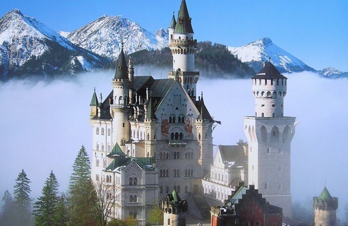 這座城堡是巴伐利亞國王路德維希二世的行宮之一。共有360個房間,其中只有14個房間依照設計完工,其他的346個房間則因為國王在1886年逝世而未完成。是德國境內受拍照最多的建筑物,也是最受歡迎的旅游景點之一。新天鵝城堡是德國的象征,世界上沒有一個國家像德國那樣擁有如此眾多的城堡,據說目前仍有14000個。在眾多的城堡中,最著名的是位于慕尼黑以南富森(Fussen)的阿爾卑斯山麓的新天鵝城堡。由于是迪斯尼城堡的原型,也有人叫白雪公主城堡。建于1869年。從奧格斯堡到富森,光是坐火車一路的風景都會讓遐思神往。這猶如人間仙境的地方藏著有關魔法、國王,騎士的古老的民間傳說,還有那無邊原始的森林、柔嫩的山坡、無邊的綠野上漫步著成群的牛羊,積雪終年的阿爾卑斯山和無盡寬闊的大湖。