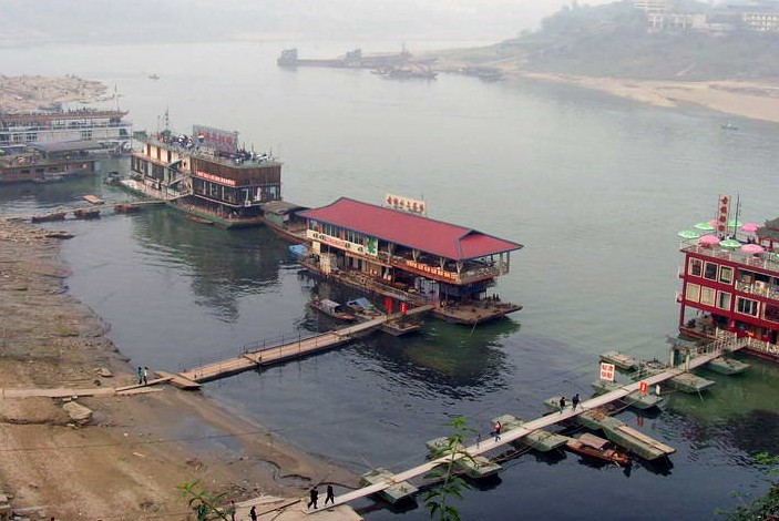 在重慶作為陪都時(shí)期,據(jù)統(tǒng)計(jì)有商號(hào)、貨棧和各種作坊達(dá)1670多家,攤販760多戶(hù)。每天都有300多艘(船均載重10噸)貨船進(jìn)出碼頭。全年中商貿(mào)最興旺的是枯水季節(jié)(舊歷八月至次年四月),碼頭河壩搭建起臨時(shí)街道,有上河街、中河街、下河街,還有專(zhuān)業(yè)性的木竹街、鐵貨街、陶瓷街和豬市、米市。碼頭上萬(wàn)商云集,擁擠不通。
