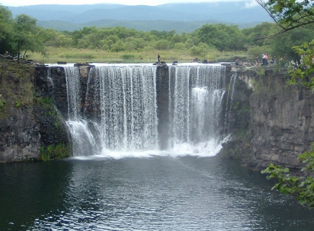 吊水樓瀑布,古時土著人名曰"發(fā)庫",位于湖之北端,距"鏡泊山莊"僅三公里。從"鏡泊山莊"乘車,沿著一條山路,便可抵達(dá)龍泉山腳下的冷食店"湖光閣"。由"湖光閣"向左轉(zhuǎn),駛進(jìn)盤山曲徑,通過急流上懸架的"飛虹橋",再穿越一段枝葉交錯的綠色長廊,一座古樸雅致的六角亭臺便出現(xiàn)在眼前。此時,瀑布瀉落的轟鳴之聲不絕于耳,撲面的微風(fēng)夾雜著一股股沁人的清新與甘甜。游人至此多于亭中小憩,然后步行穿過一片闊葉林,呼嘯奔騰、氣勢磅礴的"吊水樓瀑布"便映入眼簾。吊水樓瀑布酷似聞名世界的"尼亞加拉大瀑布"。湖水在熔巖床面翻滾、泡哮,如千軍萬馬之勢向深潭沖來,然后從斷巖峭壁之上飛瀉直下,撲進(jìn)圓形甌穴之中。潭水浪花四濺,如浮云堆雪,白霧彌漫;又似銀河倒瀉,白練懸空。水聲震耳如有雷鳴。瀑布一般幅寬四十余米落差為十二米。雨季或汛期,瀑布呈現(xiàn)兩股或數(shù)股迭落,總幅寬達(dá)二百余米。瀑布兩側(cè)懸崖巍峨陡峭,怪巖崢嶸。站在崖邊向深潭望去,如臨萬丈深淵,令人頭暈?zāi)垦?。一棵高大遮天的古榆枝繁葉密酷似一把天然的巨傘,踞險挺立于峭崖亂石之間。斑駁的樹影中,一座小巧的八角亭榭依巖而立,人稱"觀瀑亭"。亭臺至瀑布流口及北沿筑有鐵環(huán)鎖鏈護欄。古榆下尚有一條經(jīng)人工鑿成的石頭階梯蜿蜒伸向崖底的黑石潭邊,枯水期間,潭水波平如鏡。據(jù)測黑石潭深達(dá)六十米,直徑也有一百余米。每逢晴天麗日,光照相瀑布,則有色彩斑斕的彩虹出現(xiàn)。凡到此游覽者,無不驚嘆其壯美的景色。詩人曾為它留下"飛落千堆雪,雷鳴百里秋。深潭霞飛霧漫,更有露浸岸秀"的優(yōu)美詩篇。瀑布之成因,據(jù)考察證實,是鏡泊湖火山群爆發(fā)時,噴發(fā)出的熔巖在流動進(jìn)程中,接觸空氣的部分首先冷卻成硬殼,而硬殼內(nèi)流動的熔巖中尚有一部分氣體仍未得到逸散,及至熔巖全部硬結(jié)后,這些氣體便從硬殼中排除,形成許多氣孔和空洞。版權(quán)所有山東聊城聊之旅國際旅行社有限公司,轉(zhuǎn)載必究!這些氣孔和空洞后又塌陷,形成了大小不等的熔巖洞。當(dāng)湖水從熔巖洞的斷面跌下熔巖洞時,便形成了十分壯觀的瀑布。冬季枯水期,瀑布不見了,卻可以觀賞到另一番景致。在熔巖床上,游人可發(fā)現(xiàn)許多被常年流水沖擊的熔巖塊因磨蝕而形成的大小深淺不等的溶洞。這些溶洞,猶如人工鑿琢般光滑圓潤,十分別致。環(huán)潭的黑石壁,又是一個天然的回音壁,它會把游人的輕歌笑語,經(jīng)圓型石壁的折射,清晰地傳到自己的耳邊。石壁可與北京天壇公園的"回音壁"相提媲美。