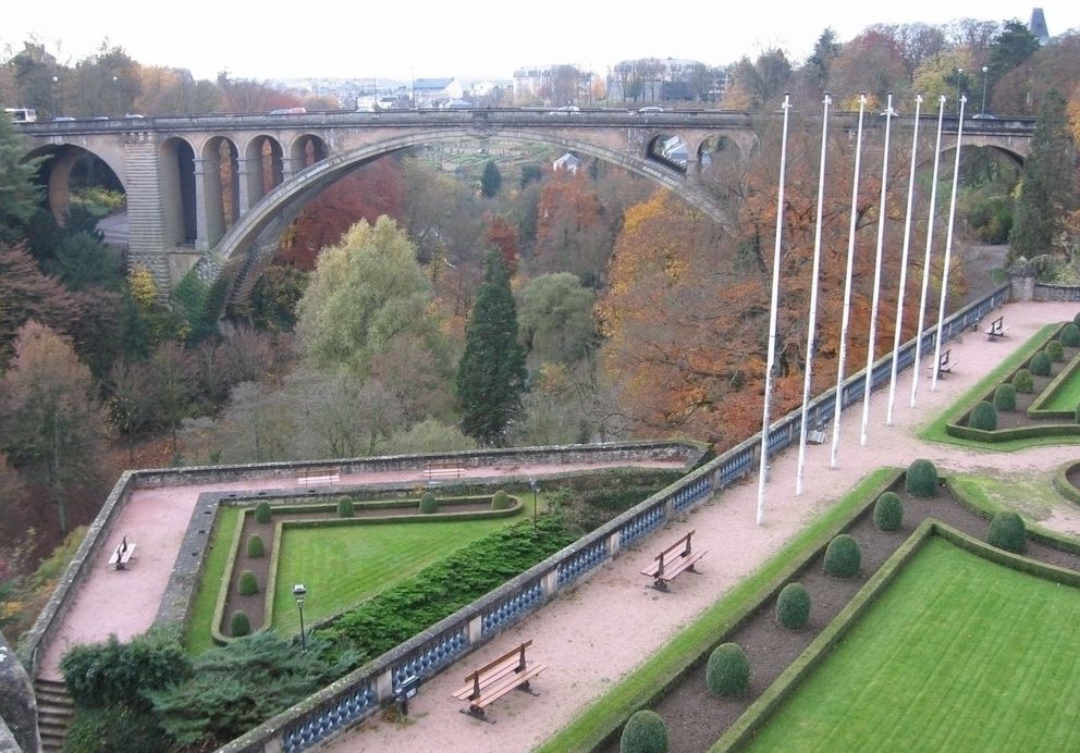 亞當(dāng)夫吊橋 亞當(dāng)夫吊橋是盧森堡的市標(biāo)之一,橋跨越峽谷,很壯觀,由火車站外過馬路沿AUENUELIBERTE走10分鐘就到。